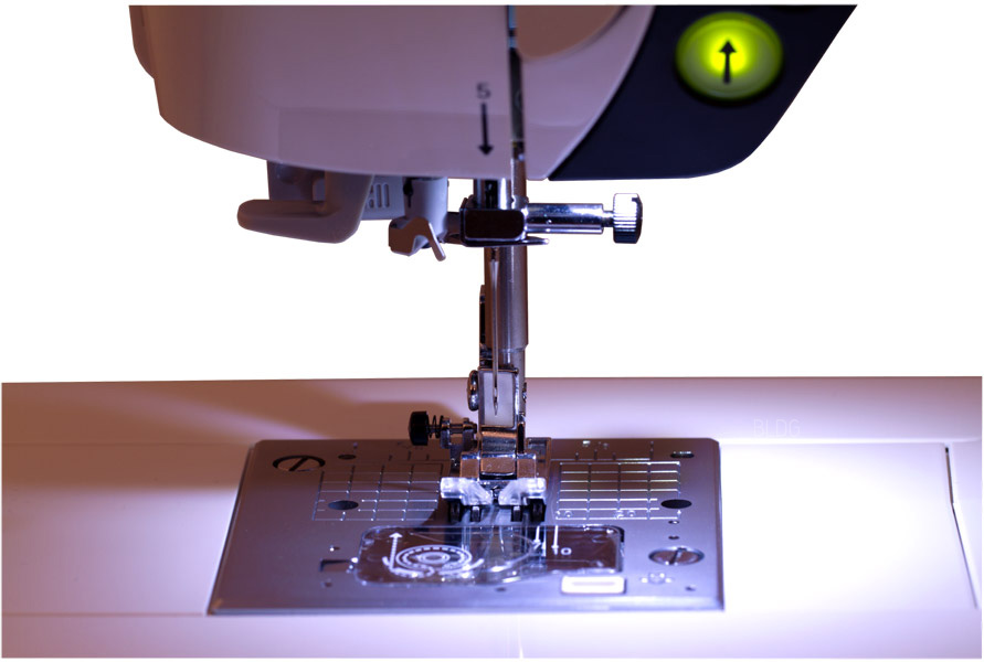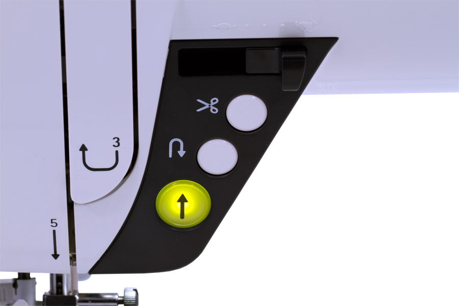 Šicí stroj JUKI HZL-G210 můžete ovládat nejen nožním ovladačem, ale také pomocí tlačítka Start/ Stop umístěného přímo na stroji. Toto tlačítko je navíc podsvícené a signalizuje Vám připravenost stroje: